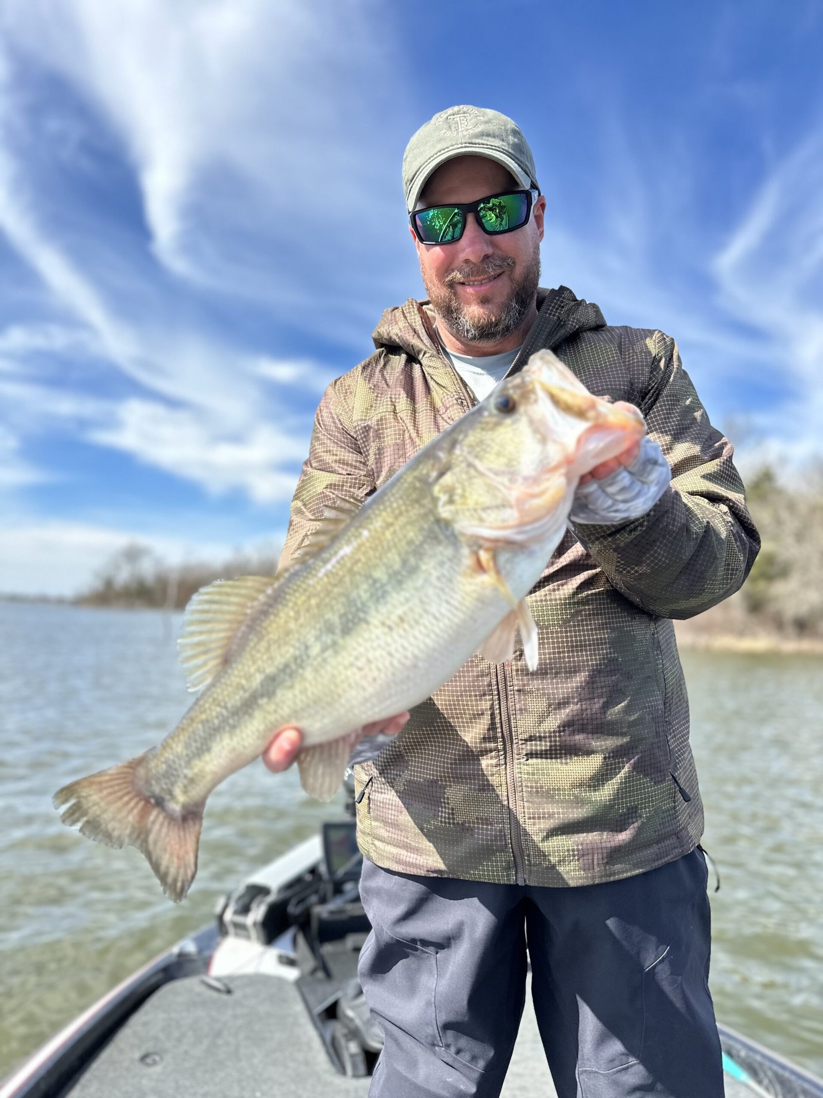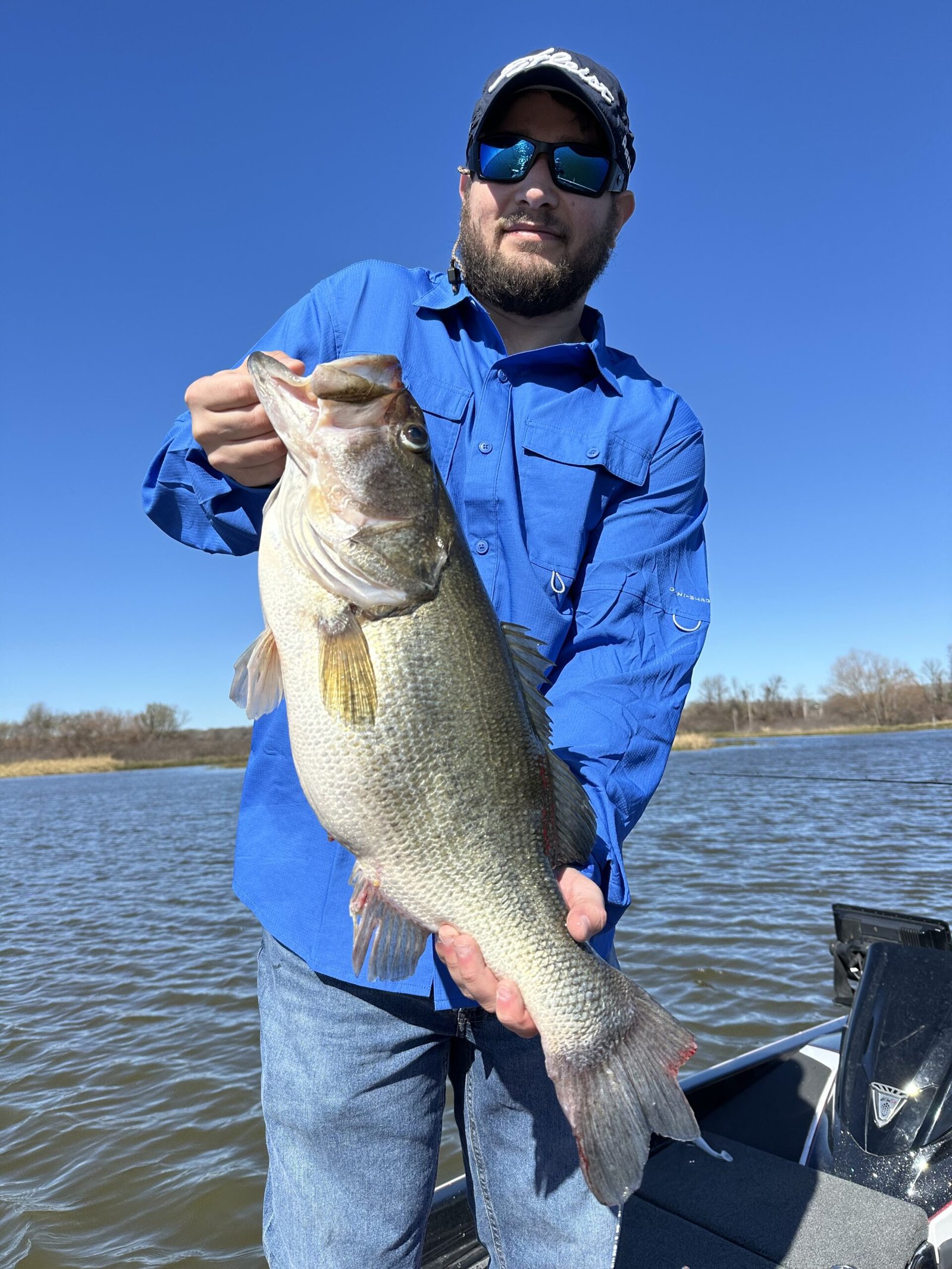 Our weather has been warmer than normal, and we have had a ton of fish move up shallow, and quite a few of those have started the spawning process. Our big bass of the month weighed 10.11 lbs, but we caught a lot of bass over 6 pounds this month.