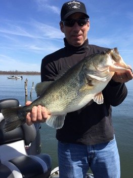 There are some fish roaming some very shallow water (1'-3'), but there's not much size to them yet. I am focusing on depths of 10'-20' looking for those bigger females. My numbers haven't been very good due to the weather, but our size has been good, and that's what most people come to Lake Fork for.